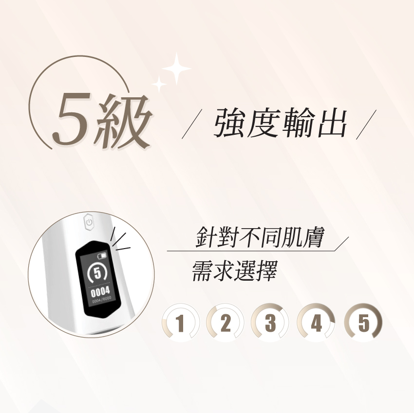 5級強度輸出,根據肌膚不同需求選擇