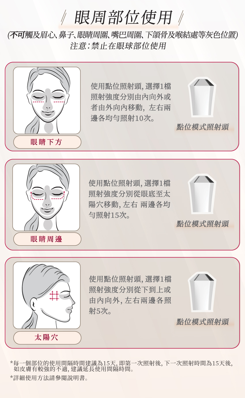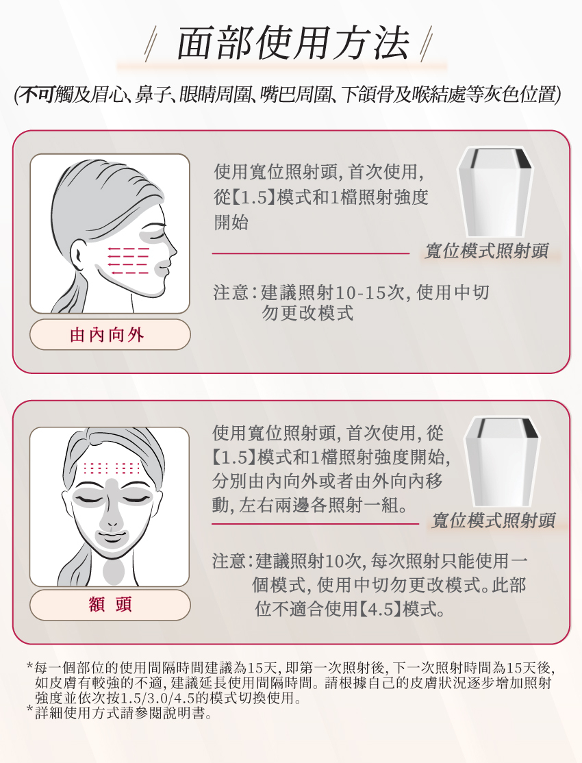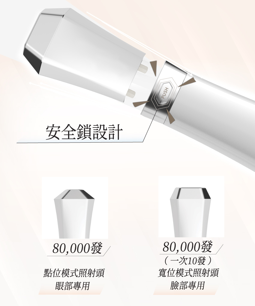 配備80,000發(一次10發)臉部專用寬位模式照射頭及80,000發點位模式照射頭