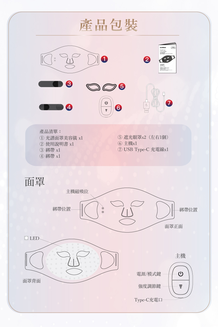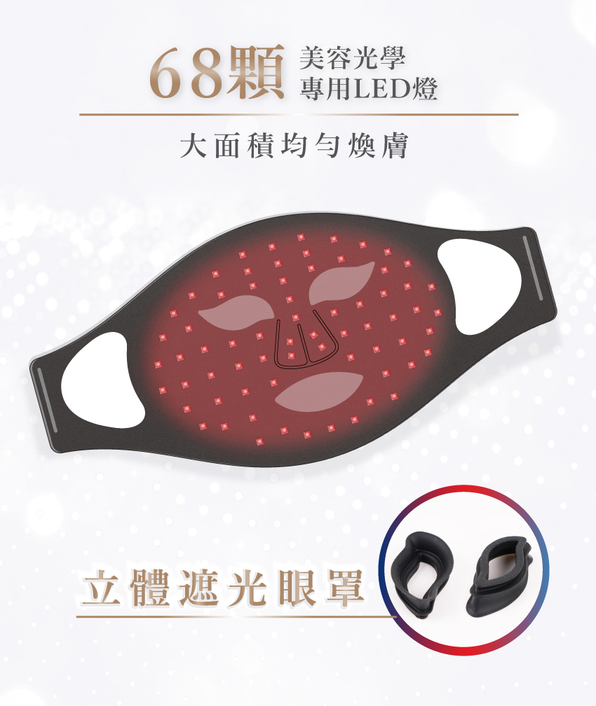 - 68顆美容光學專用LED 燈 令每吋肌膚都均勻密集受光